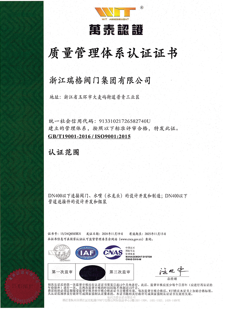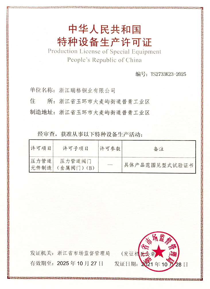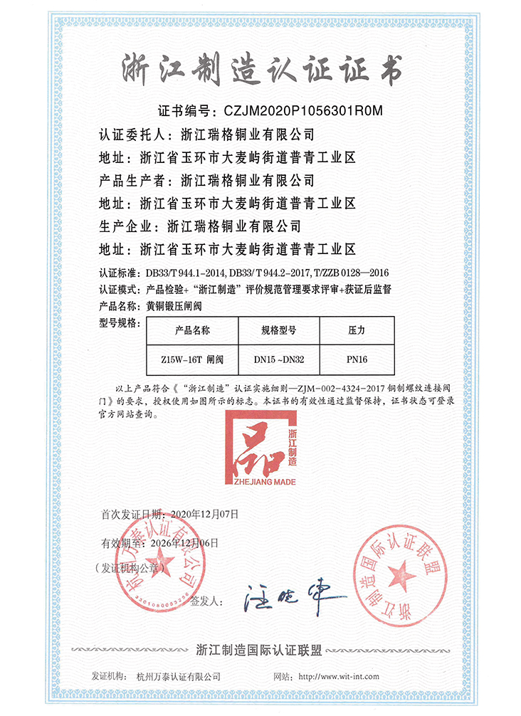 浙江瑞格閥門集團有限公司成立于1993年,地處中國東海之濱,中國閥門之都,水暖閥門采購基地一浙江玉環(huán)。公司占地面積3萬多平方米,建筑面積5萬多平方米,現(xiàn)有員工500余人,各類專業(yè)技術(shù)人員100余人。本公司集研發(fā)、生產(chǎn)、銷售和服務(wù)為一體,產(chǎn)品涵蓋了閥門、水暖、衛(wèi)浴、管件、廣泛應(yīng)用于給排水系統(tǒng)、城市供熱系統(tǒng)、暖通管道系統(tǒng)、空調(diào)管道系統(tǒng)、燃氣系統(tǒng)及產(chǎn)品配套等領(lǐng)域的股份制企業(yè);為國內(nèi)外用戶提供極致的一站式服務(wù),產(chǎn)品銷售網(wǎng)絡(luò)遍布國外和國內(nèi)32個省市自治區(qū),深受用戶的青睞和好評,在國內(nèi)中、低壓民用銅閥門領(lǐng)域中屬四大閥門品牌之一。