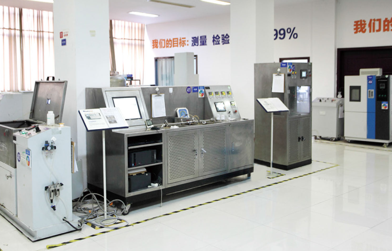 公司擁有國內(nèi)先進鍛壓生產(chǎn)線、加熱IGBT/D高頻爐、DT-8812H紅外線測溫儀、臺灣精密專機、精密CNC機床、球閥專用CNC加工機床、臺灣閘閥專用加工機床、十五條裝配生產(chǎn)流水線、自動試壓臺、拋光及超聲波清洗機和高性能退火爐等自動和半自動的生產(chǎn)加工設(shè)備。有德國進口光譜儀、抗彎、抗扭、抗拉試驗臺、水壓靜壓爆破試驗臺、高低溫氣密試驗臺、水閥壽命試驗臺、水閥流量試驗臺、氣閥流量試驗臺、氣閥壽命試驗臺、溫控閥性能曲線測試臺、溫包熱耐久測試臺、閥芯壽命測試機、軟管壽命測試機、影像測量儀、金相測試機組、水浴鍋化驗室等先進的檢測設(shè)備和檢測技術(shù),并于2018年通過國家CNAS認(rèn)可委認(rèn)可檢測中心。