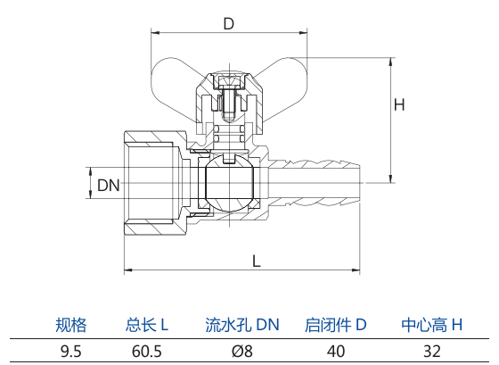 503 蝶柄內(nèi)牙膠管燃?xì)馇蜷y